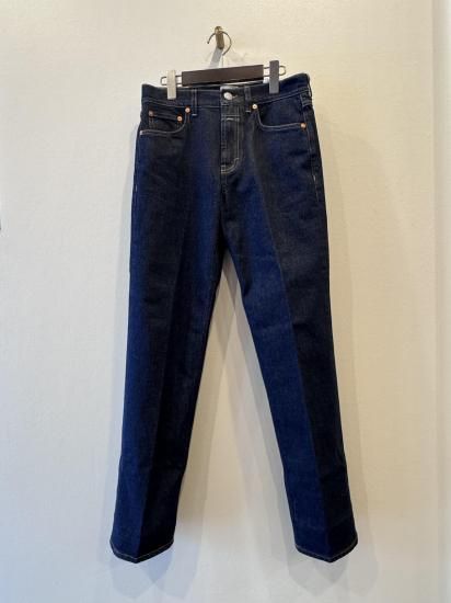 すっきりとしたクラシックフォルムのデニム。トレンドに流されないベーシックな形が使いやすい一本です。