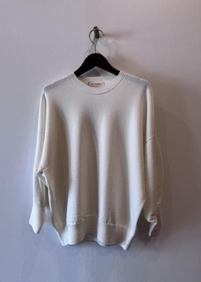 ウール糸もコシとはりが非常にあり、ハイゲージですが体のラインを出さずに程よくフィットしてホールガーメントならではの快適な着用感です。