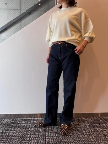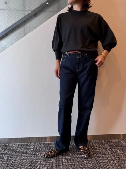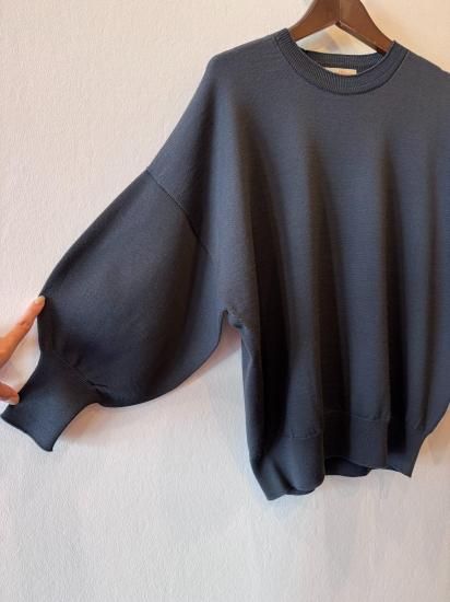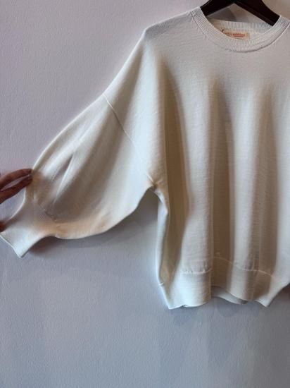 7部袖のパフがアクセントになり一枚で華やかなニットになってます。