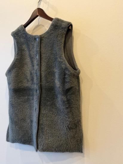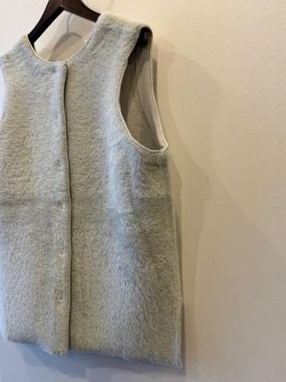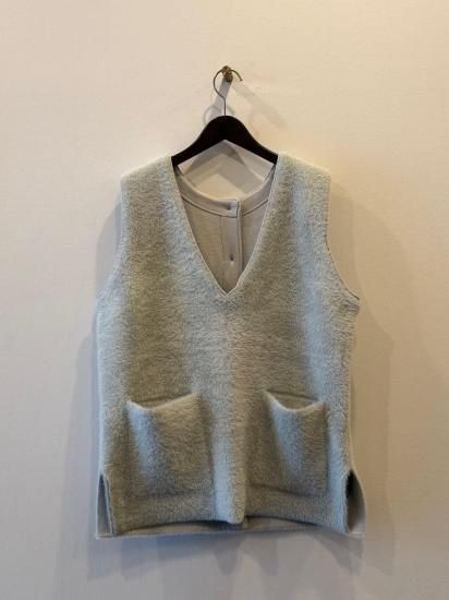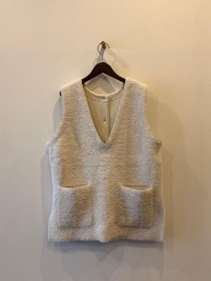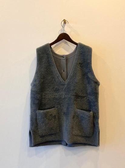 ポケット付きで、トップスの上に一枚重ねて使える簡単なレイヤードアイテムです。
