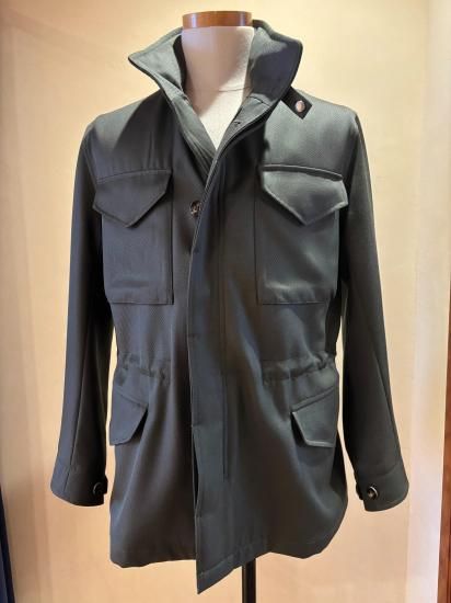 ホワイトリィアンドグリーンはフランスのメゾンブランドに乗馬用ウェアに使われるキャバリーツイルを供給してたファクトリーであります。斜め65度の綾織で梳毛のウールで織られしっかりした目付けと光沢感が特徴です。MADE IN ENGLANDです。