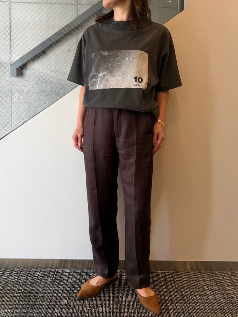 ボトムスにインしてもしなくても扱いやすい着丈になってます👍