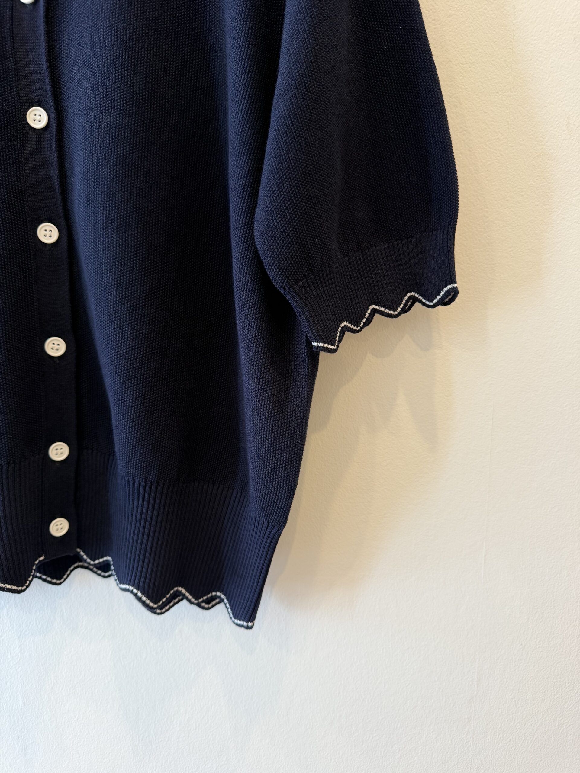 裾と袖のギザギザデザインに刺繍を施した、シンプルだけど遊びのあるデザイン。