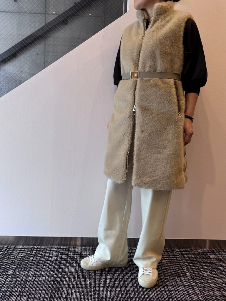長すぎない着丈と、デイリーに使えるフェイクファーなので、普段にガンガン使えます。
