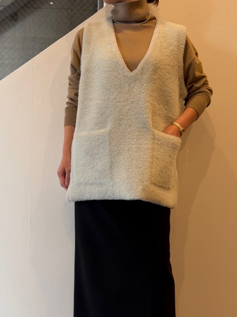手持ちのニットやシャツのインナーに足すだけで、着回しもできて万能です。