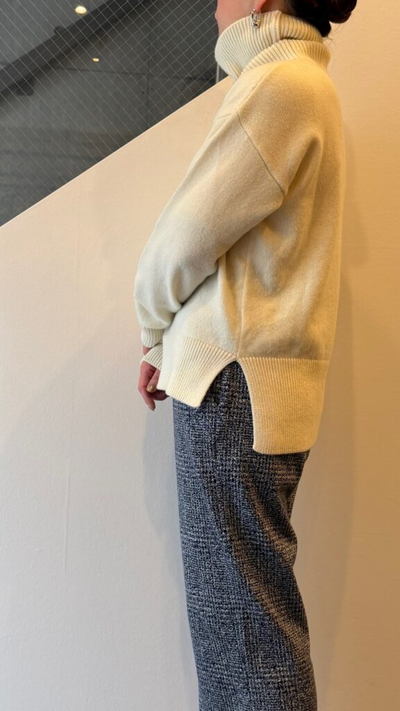 ウール90%、カシミヤ10%のローゲージタートルのご紹介です。