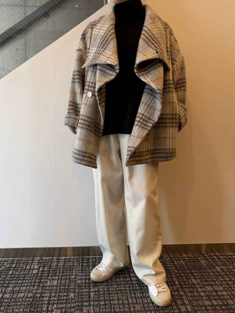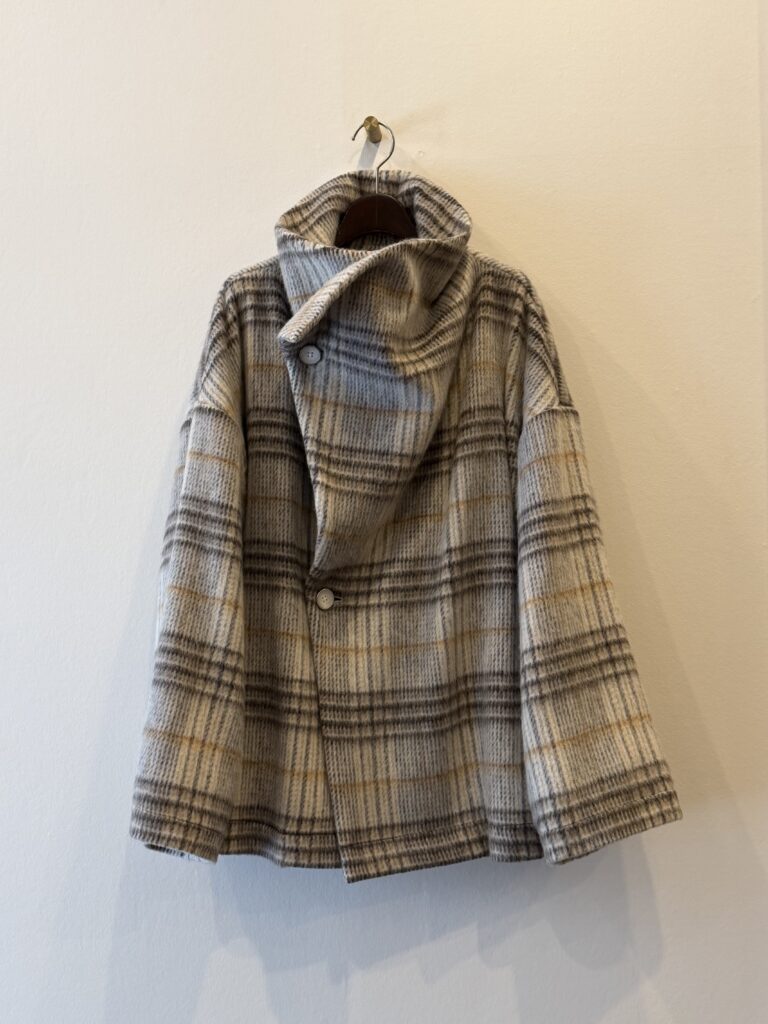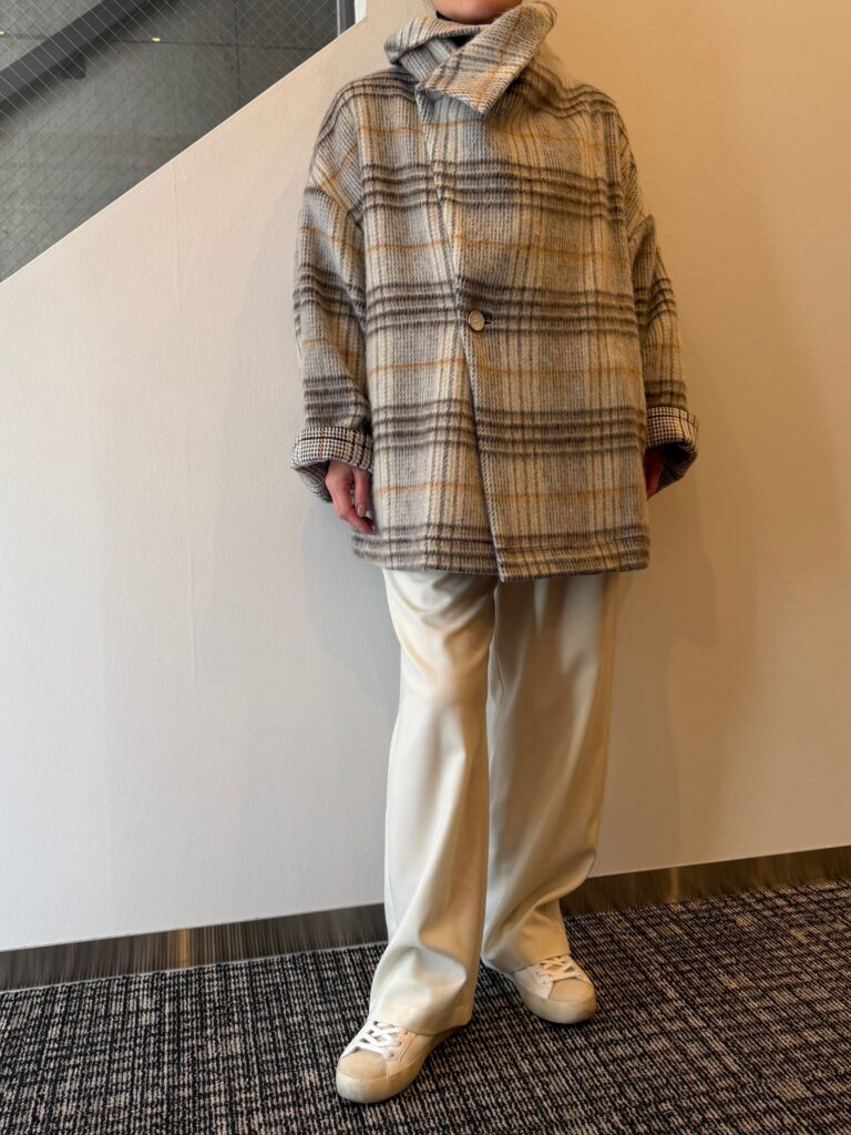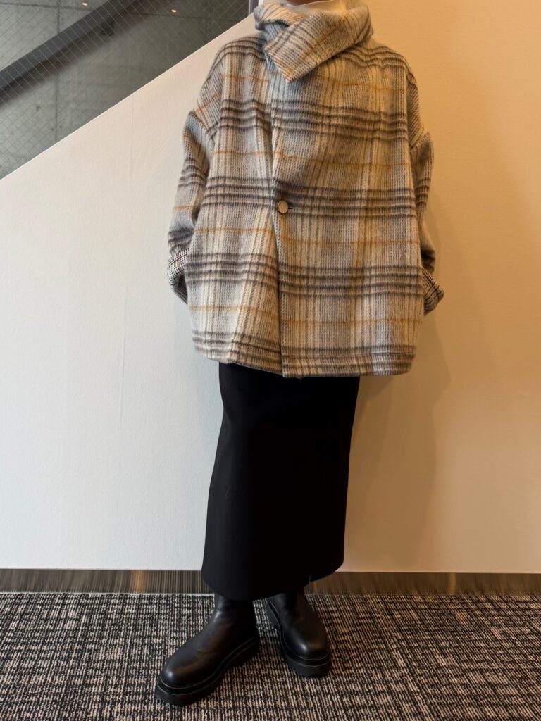 カーディガンとコートのあいだでしょうか、ライトで使いやすい一枚になってます。