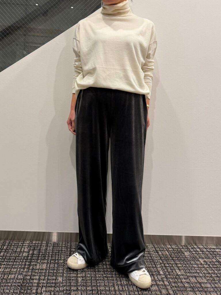 非常にさらっとしなやかな素材感で、ベロアの質感も履くと上品🎶